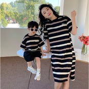 【親子服販売】親子ペアルック 親子お揃い ストライプ柄 Tシャツ ワンピース 男の子 メンズ ペアルック 半袖 記念日 キッズ カップル 家族お揃い レディース 女の子 夏服 | 子供とママの洋服*お揃いコーデショップ_GXsport Family